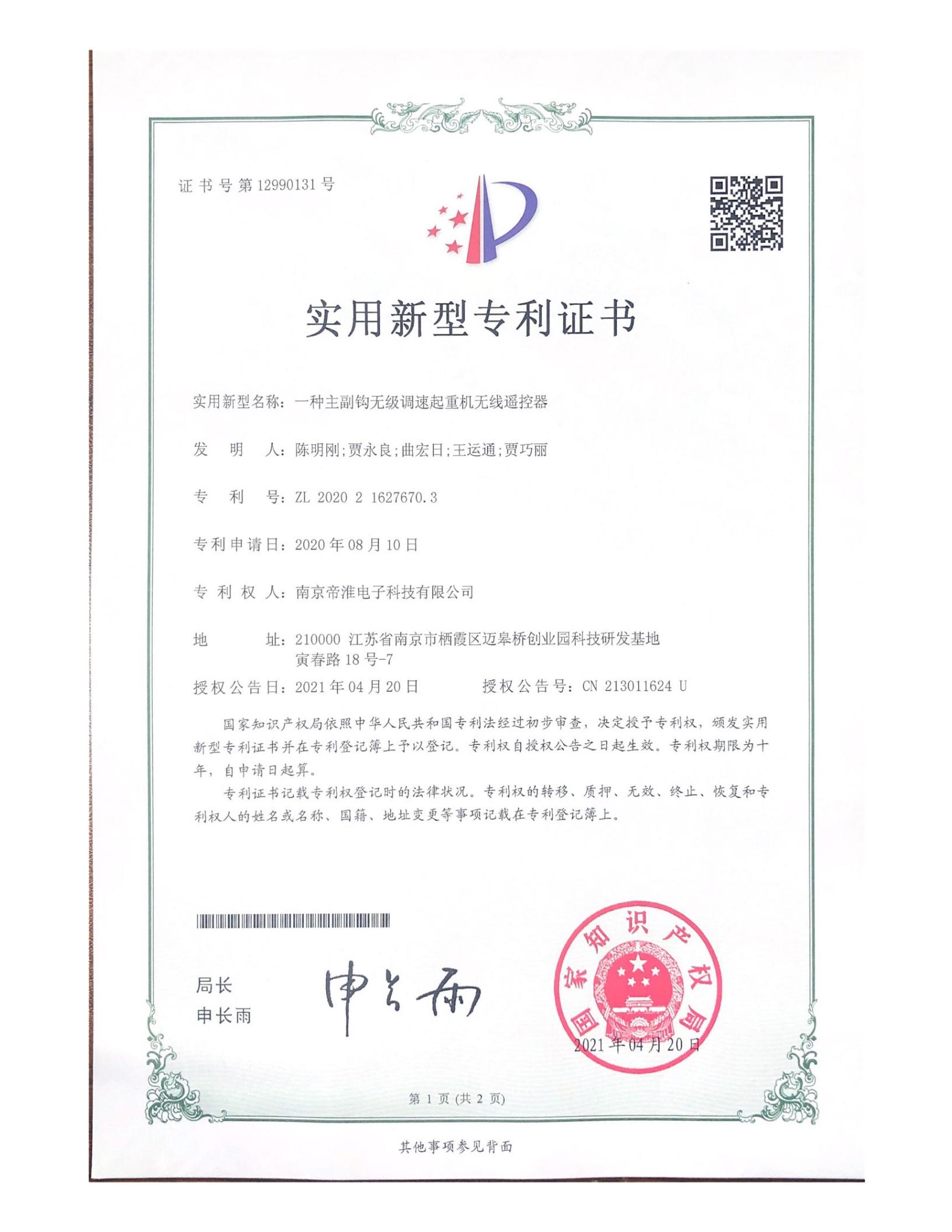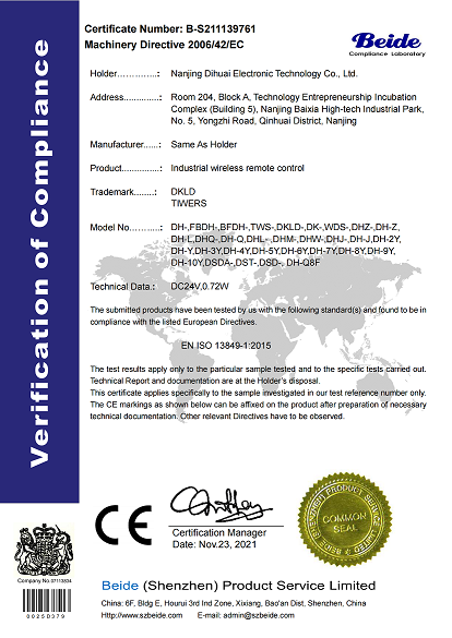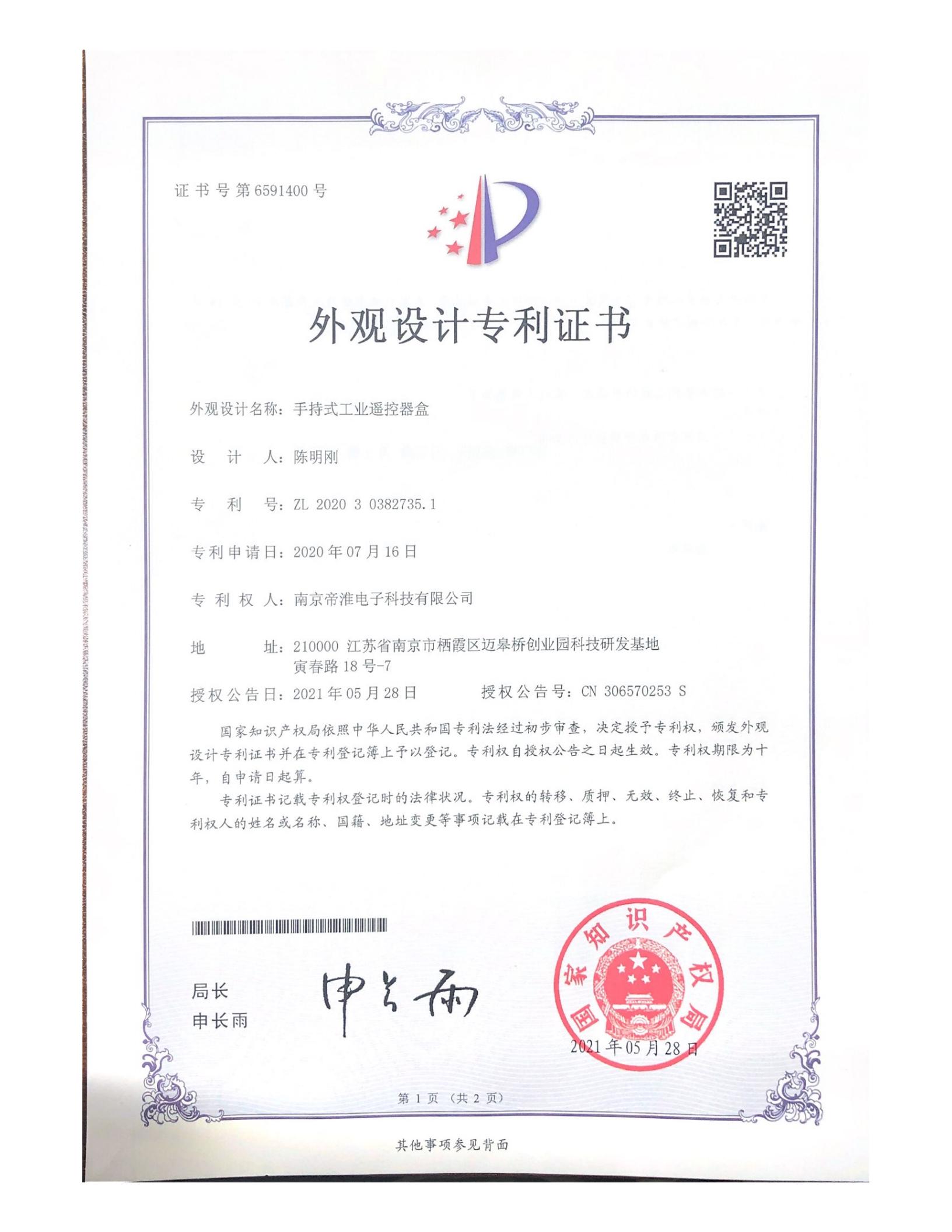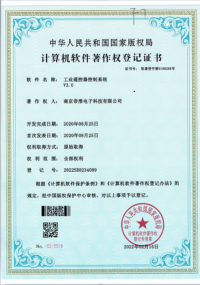 南京帝淮电子科技有限公司,国内工业??仄餍幸盗炀笠担灾餮蟹?、定制、非标设计各类工业级无线遥控器、工业级有线控制器、智能化自主算法逻辑的本地控制器等系列产品。已经申请及正在申请的技术专利、外观专利有近三十项左右,并通过了CE欧盟认证、国家级试验检验报告、EMC电磁兼容认证等。