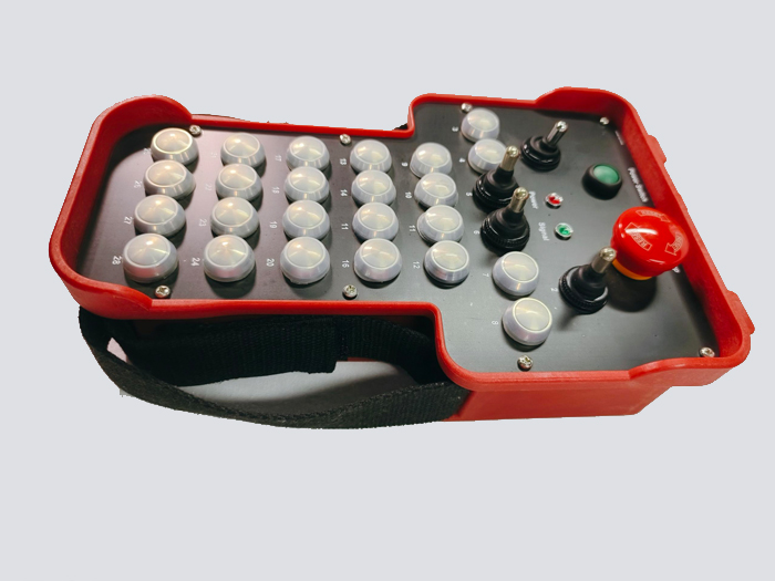 • 24个三位自复位钮子开关式48路开关量控制工业无线遥控器